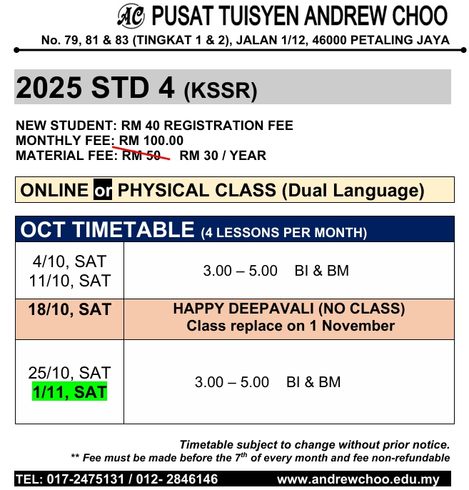 by admin | September 30, 2025 | In 2024 JADUAL WAKTU (Tuition / Holiday Programme) @ PETALING JAYA |