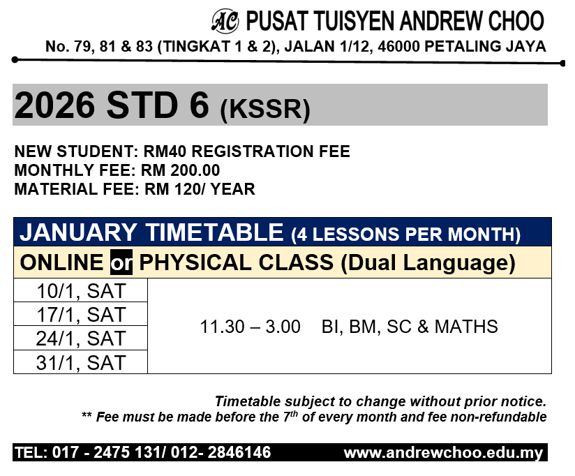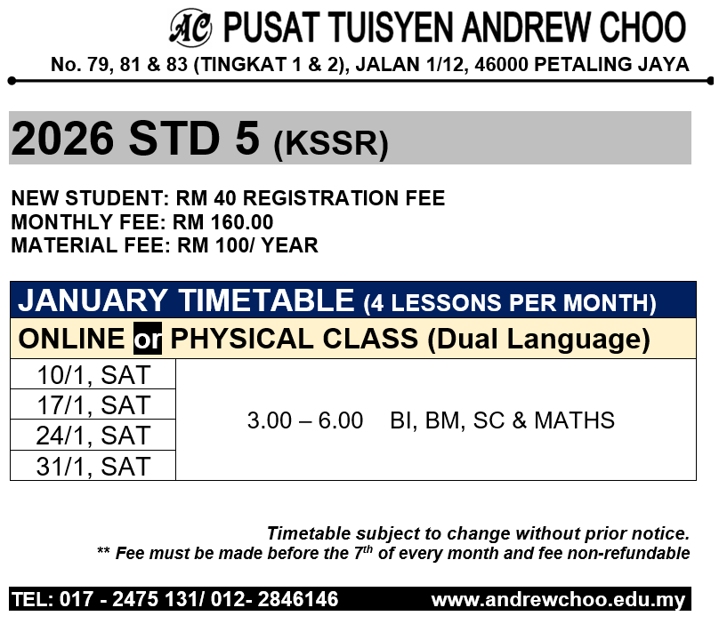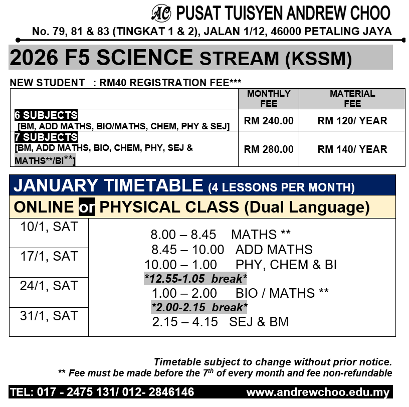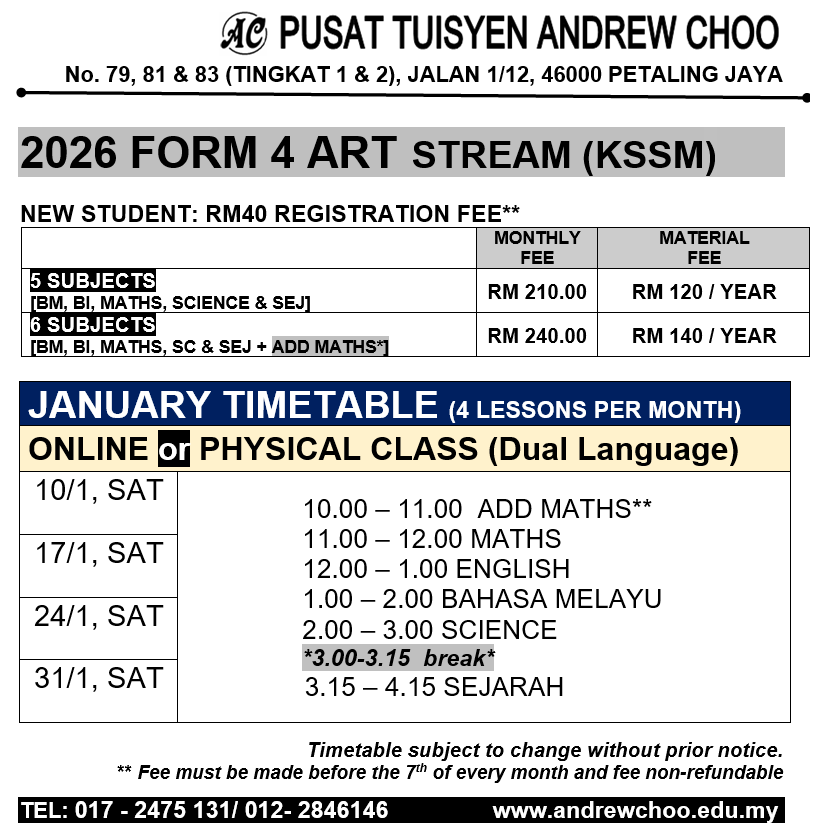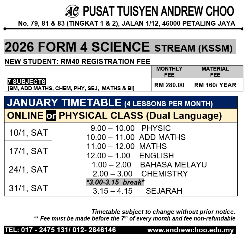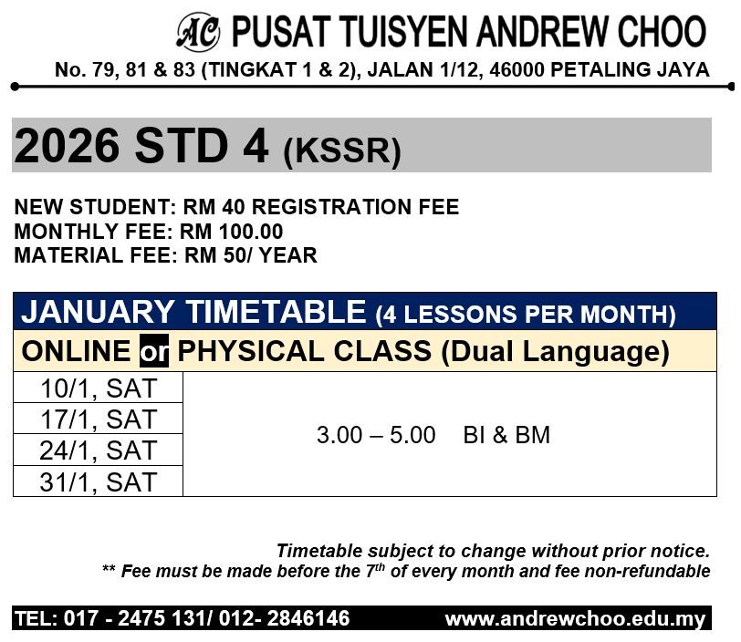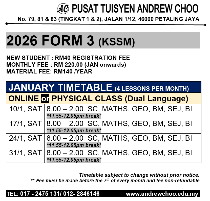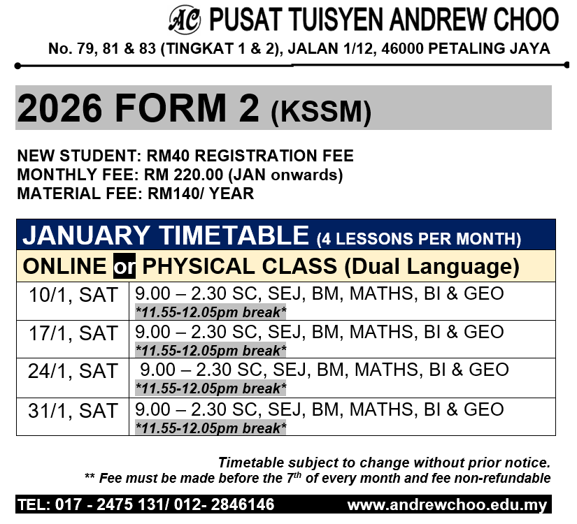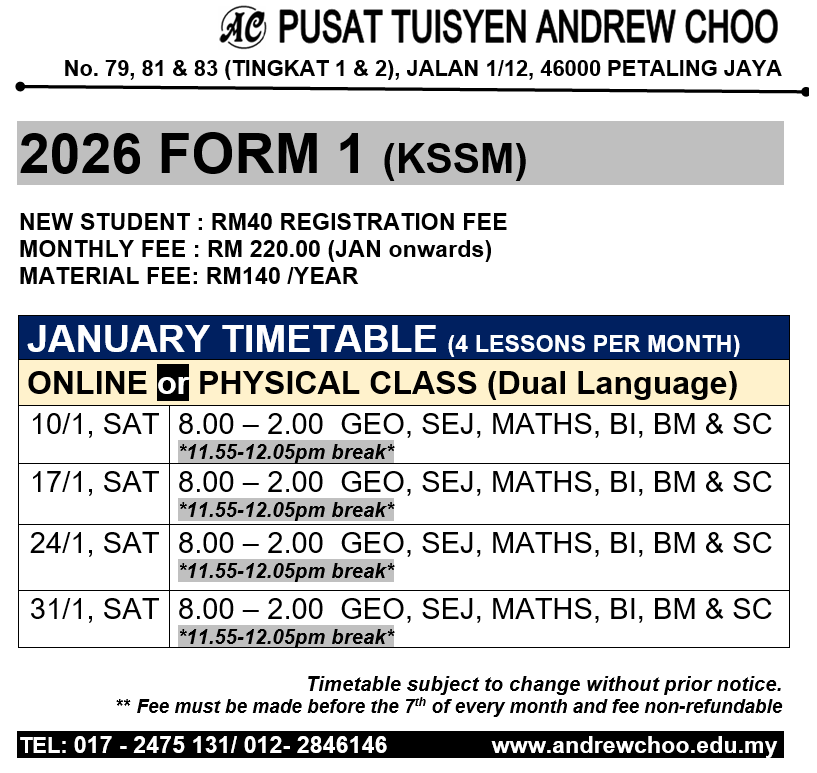 2026 JAN TUITION TIMETABLE (ONLINE // PHYSICAL CLASS // KELAS BERSEMUKA)