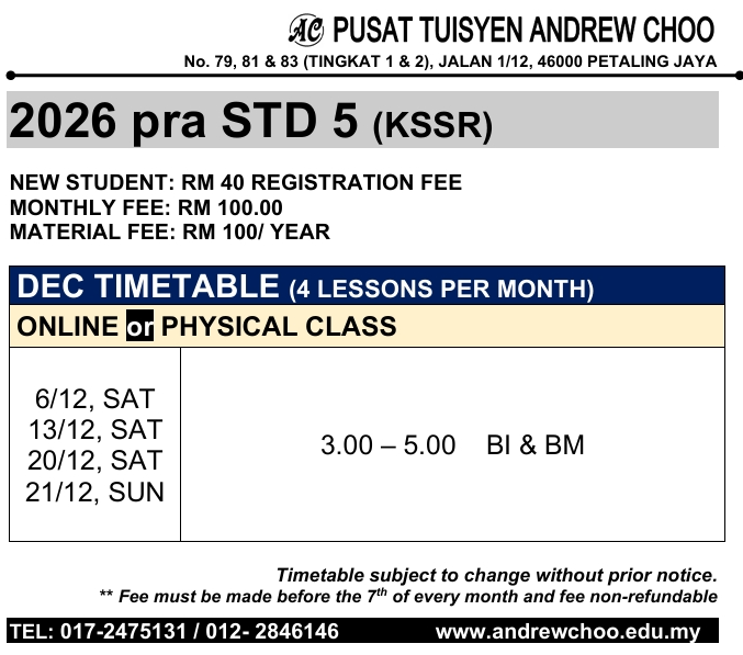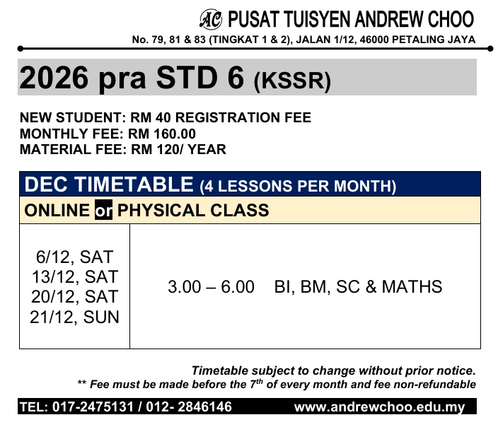 by admin | December 3, 2025 | In 2024 JADUAL WAKTU (Tuition / Holiday Programme) @ PETALING JAYA |